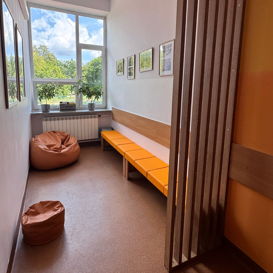 - stworzyć spójną przestrzeń - zarówno poważną (urzędową / medyczną), jak i przyjazną dzieciom.